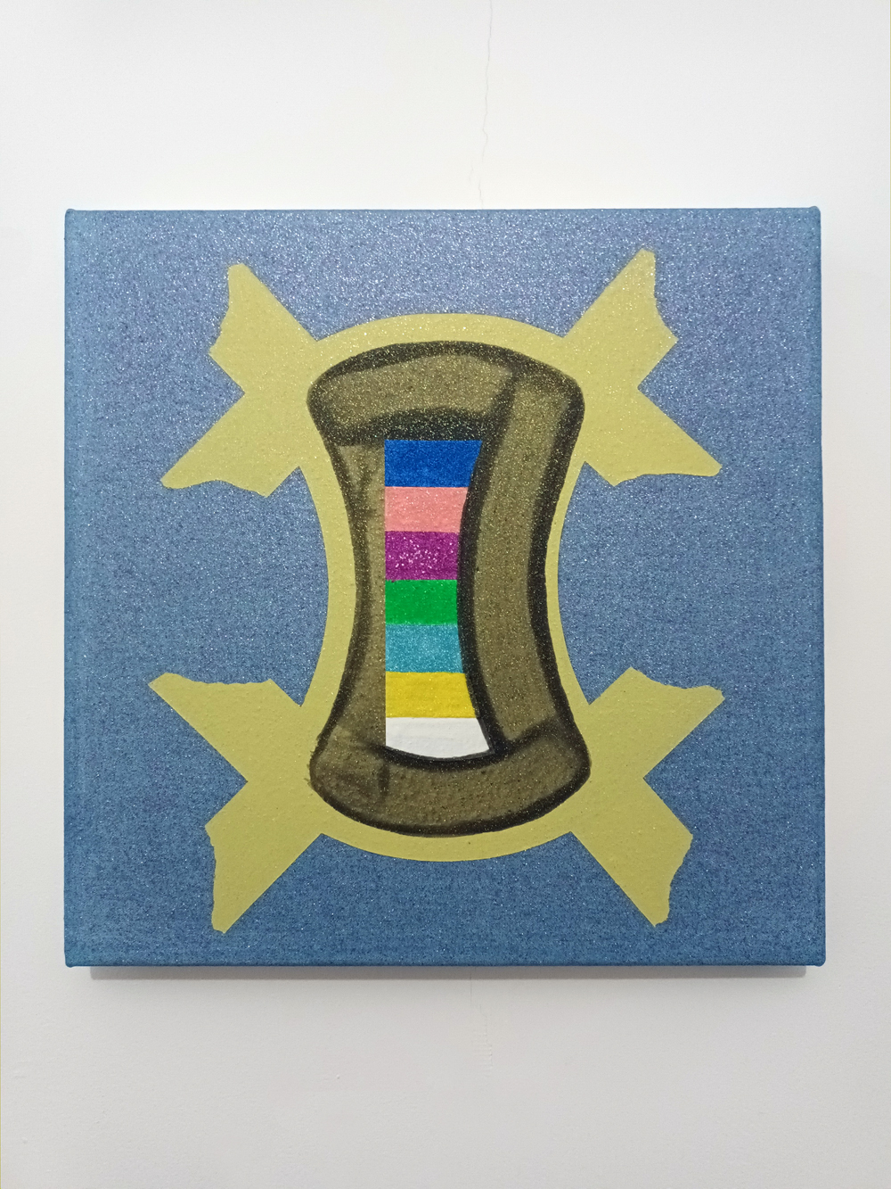 Untitled 2025 acrylic, pigment, glitter on canvas 41 x 41 x 3.5 cm