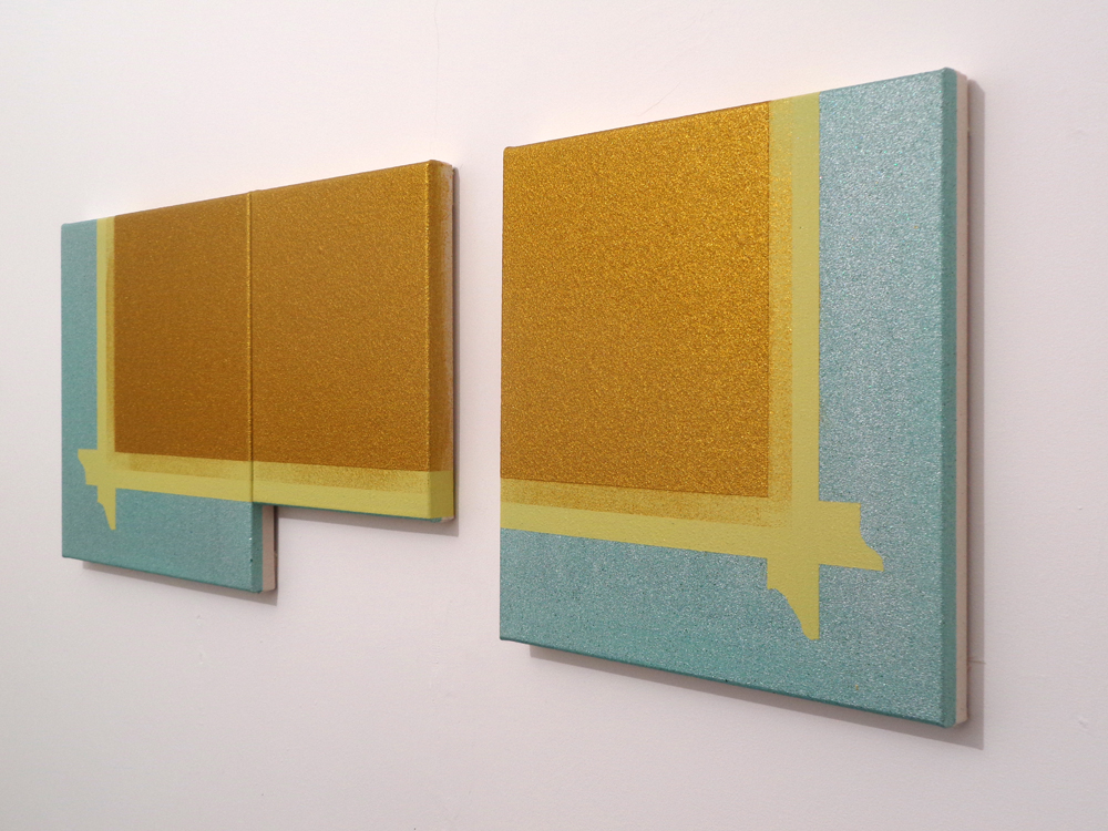 Untitled 2024 glitter, acrylic on canvas board, wood, screws 25 x 40.5 x 2.5 cm Private collection